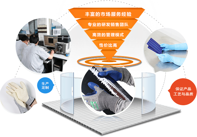 手套芯采用凱夫拉材質(zhì),經(jīng)權(quán)威機(jī)構(gòu)檢測(cè)屬于5級(jí)防割標(biāo)準(zhǔn),針織采用無縫針織,針織密度高,防止硅粉及金屬碎屑進(jìn)入手背,手掌涂層采用壓紋設(shè)計(jì),具有良好的減震功能,手套制作完成以后經(jīng)過6次清洗工藝處理,經(jīng)權(quán)威機(jī)構(gòu)檢測(cè)表金屬雜質(zhì)低于45PPBW.